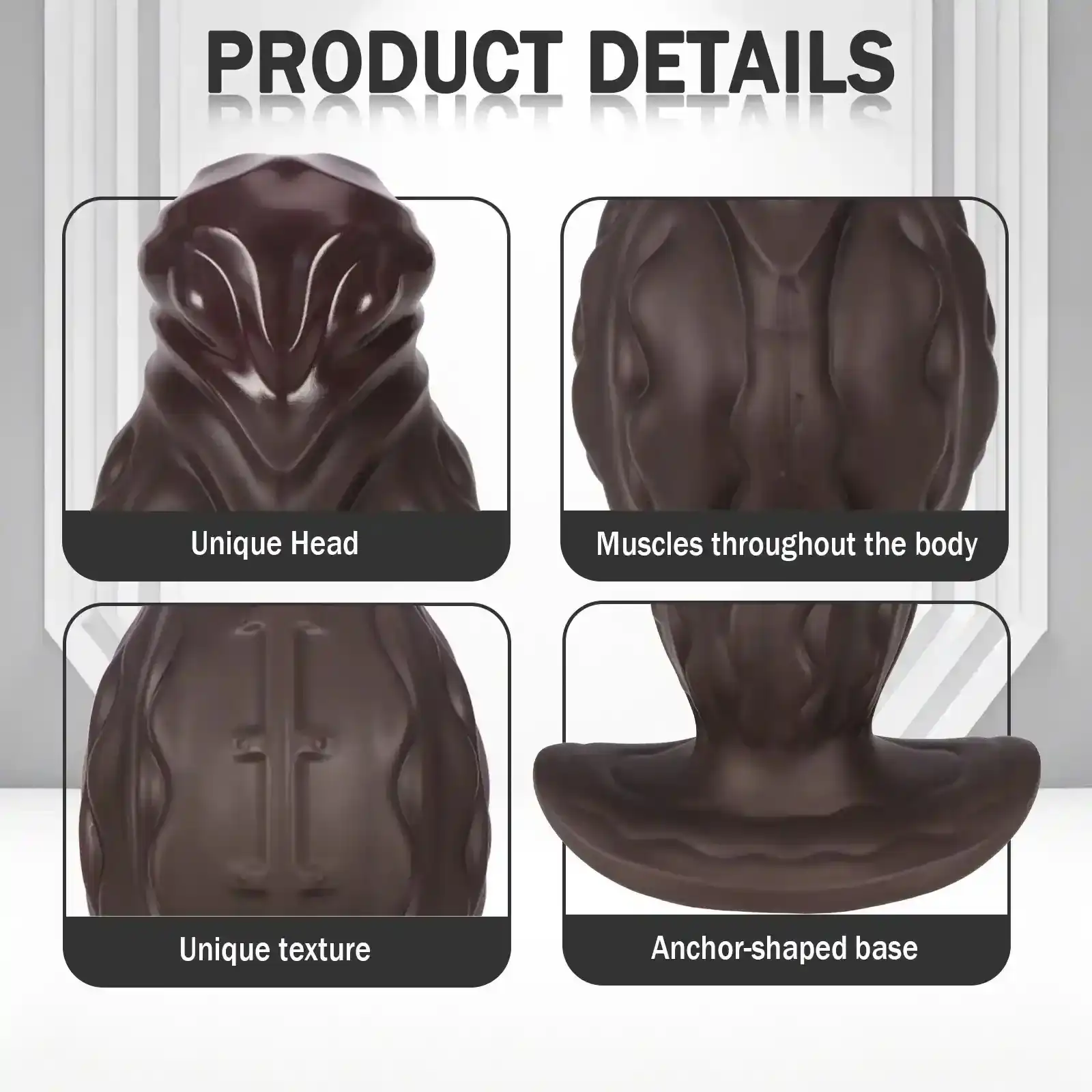 - Base con forma de ancla: Proporciona un ajuste seguro y confortable, previniendo la inserción excesiva y permitiendo un juego sin preocupaciones.