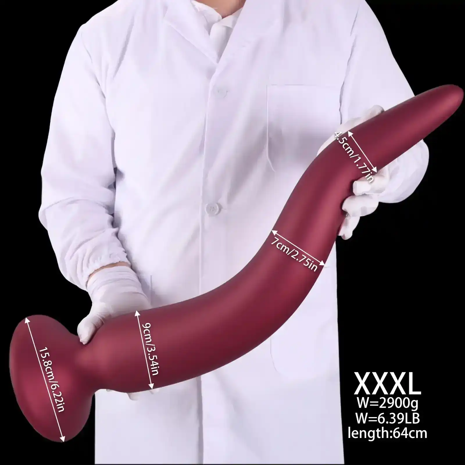 - Dimensiones (XXXXL): 10 cm de diámetro x 18 cm de longitud