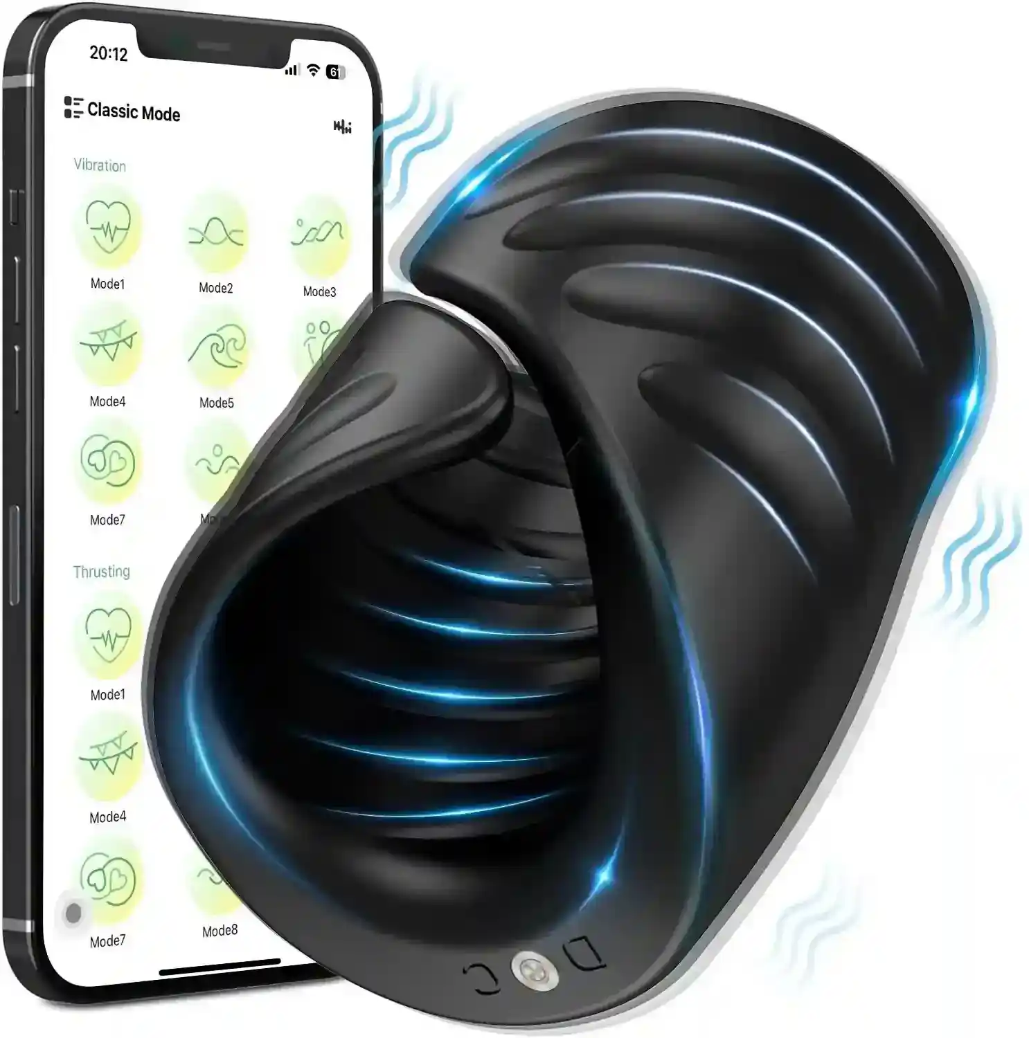 • Estimulación Intensa del Glande: Diseñado para excitar el frenillo con vibraciones precisas y aletas ajustables, permitiéndote personalizar la intensidad y la sujeción para un orgasmo explosivo.