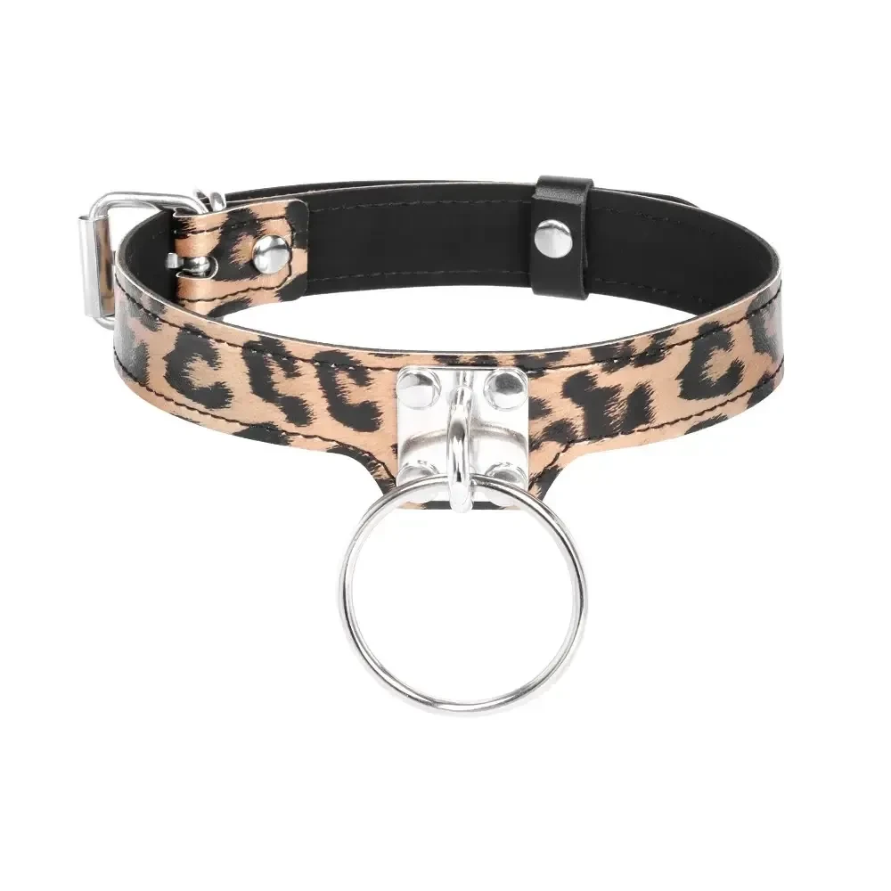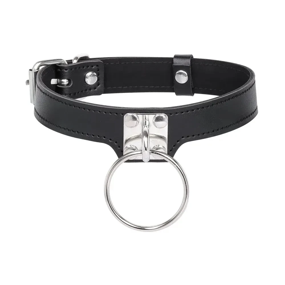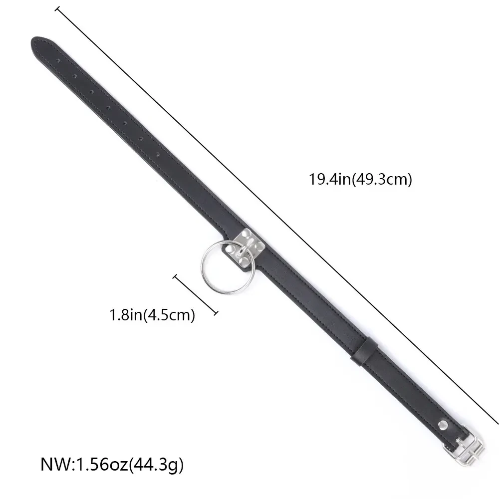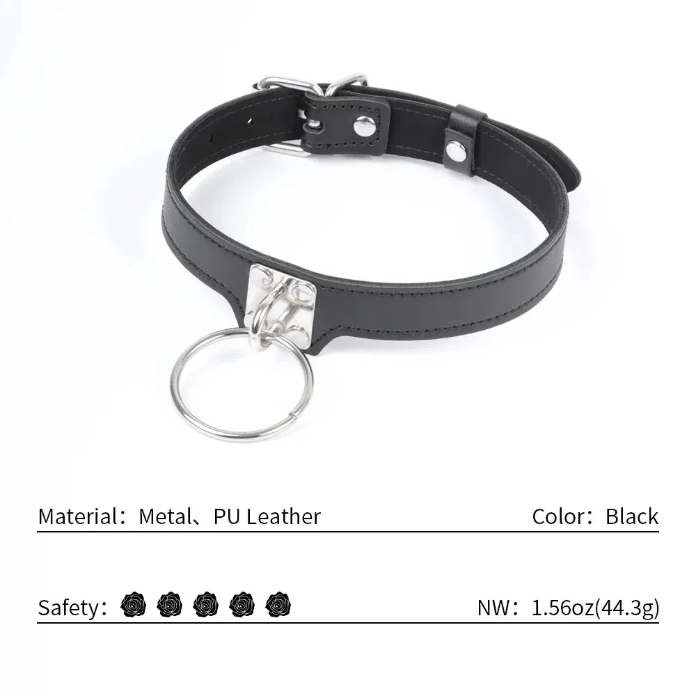 BDSM Choker – Collar de cuero PU ajustable con aro metálico