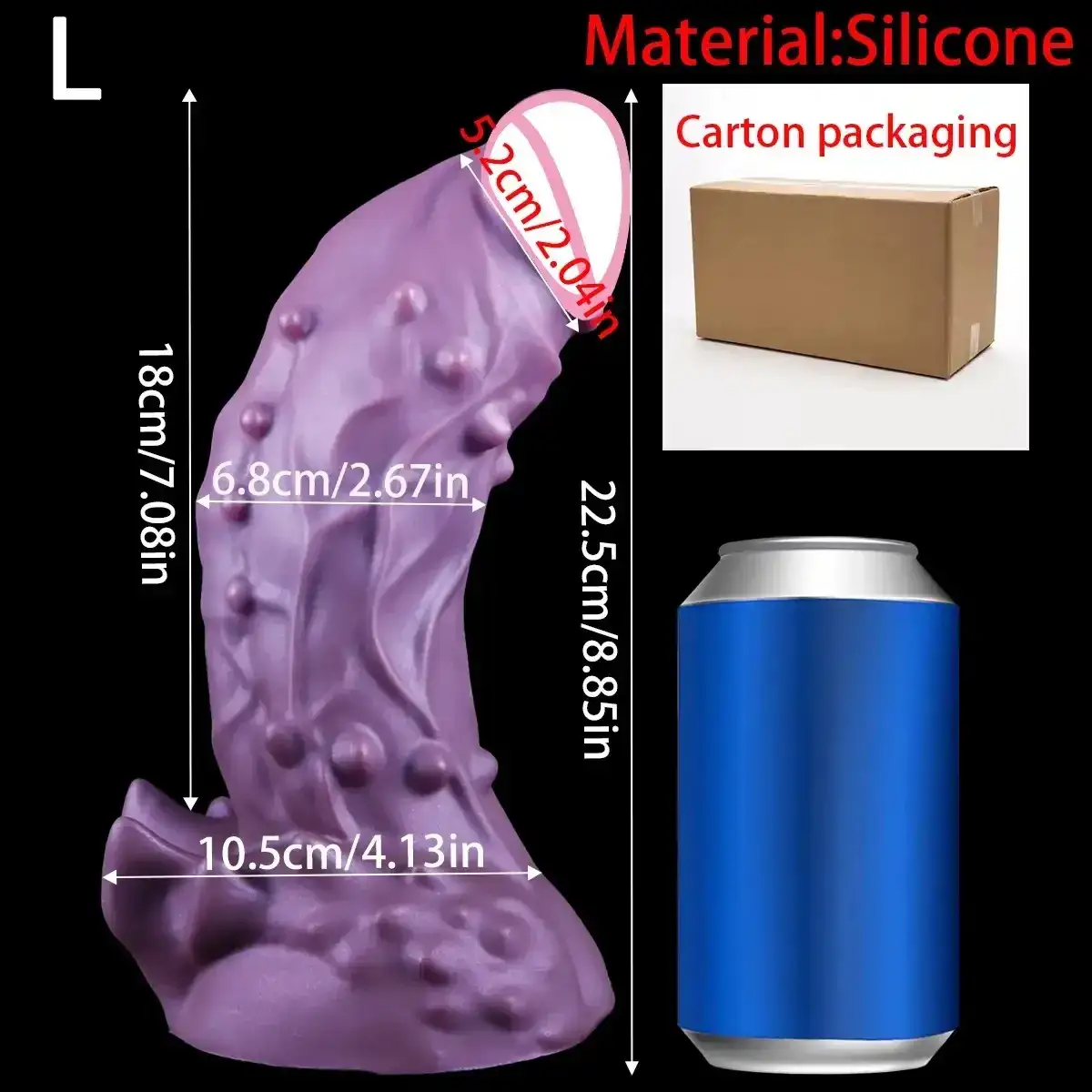 - Grande: Longitud de inserción: 18 cm, Diámetro máximo: 6.8 cm