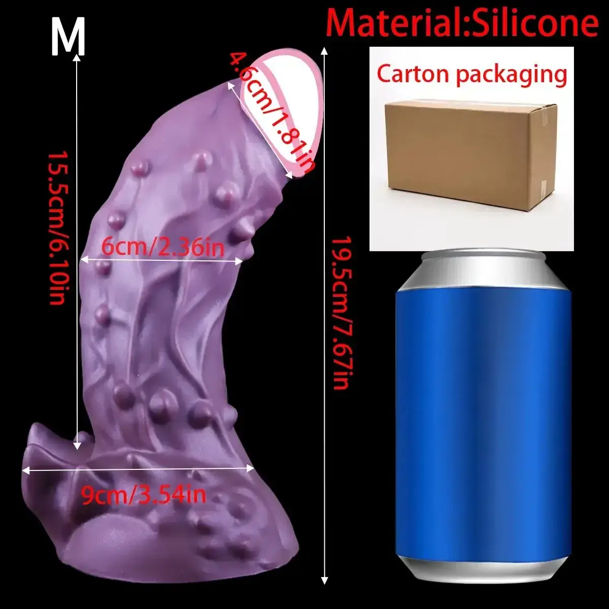 - Mediano: Longitud de inserción: 15.5 cm, Diámetro máximo: 4.6 cm