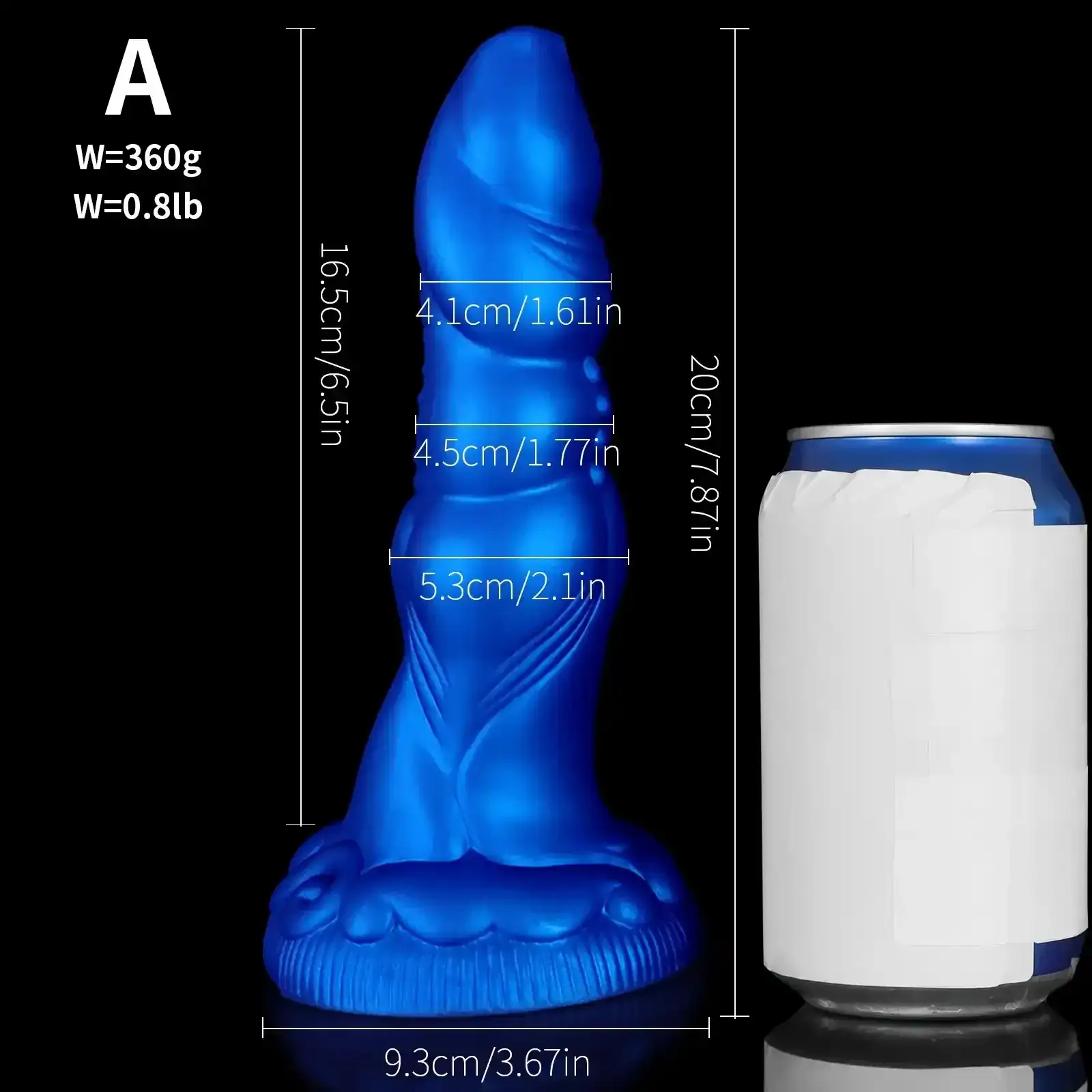 - Grande: Largo: 23.5 cm, Longitud insertable: 19.5 cm, Diámetro: 5.1 cm