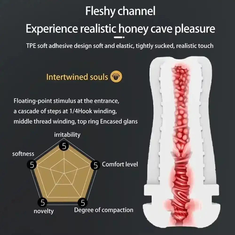 - Sensaciones Realistas: Experimenta el placer de una cavidad suave y elástica gracias al material TPE de alta calidad.