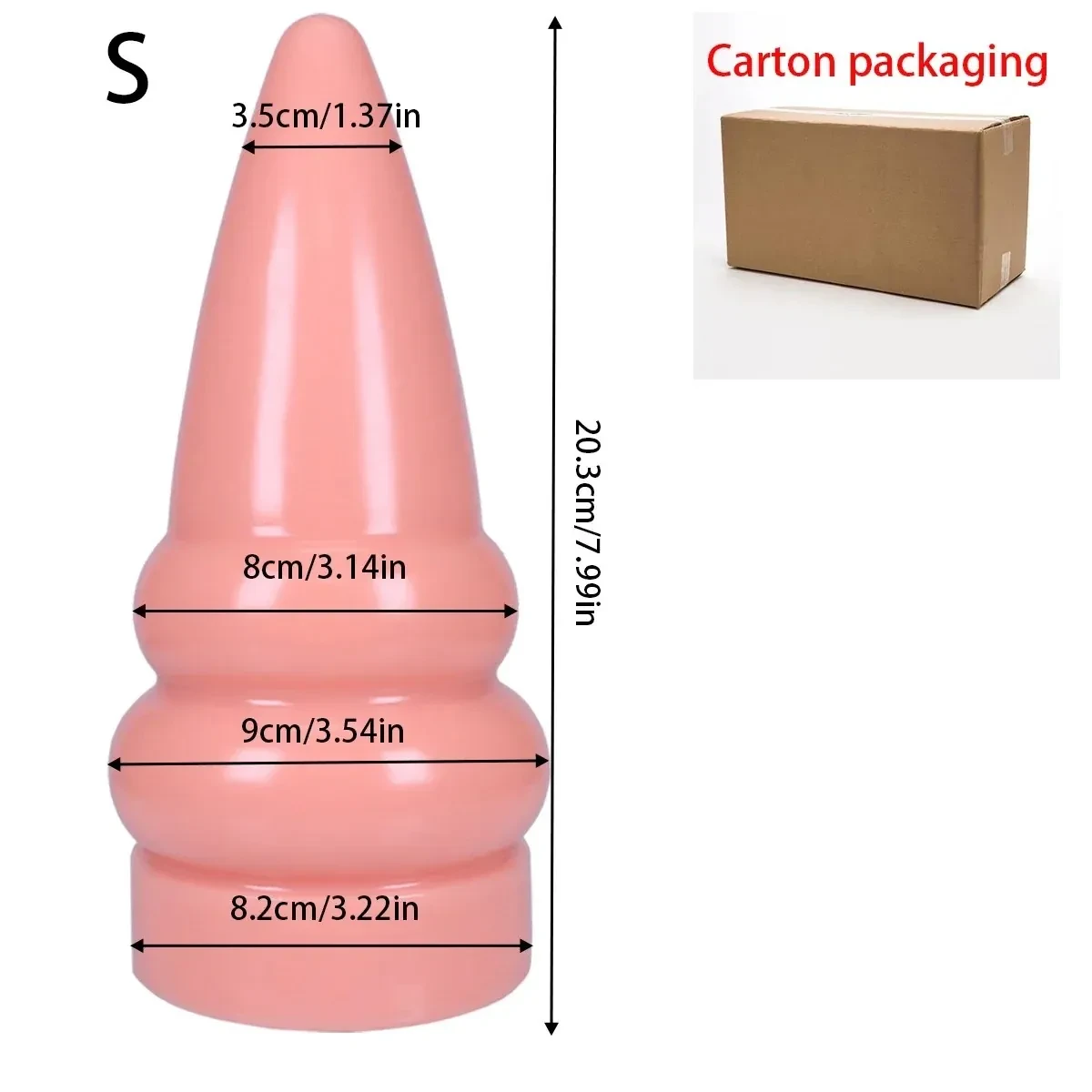 - Dimensiones (Pequeño): 20.3 cm de longitud de inserción, 8 cm de diámetro máximo.