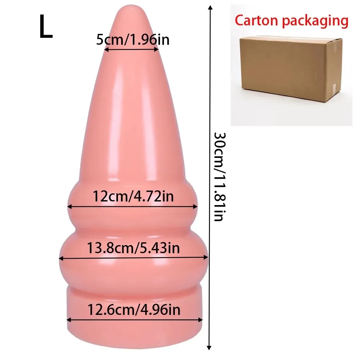 - Dimensiones (Grande): 30 cm de longitud de inserción, 12 cm de diámetro máximo.