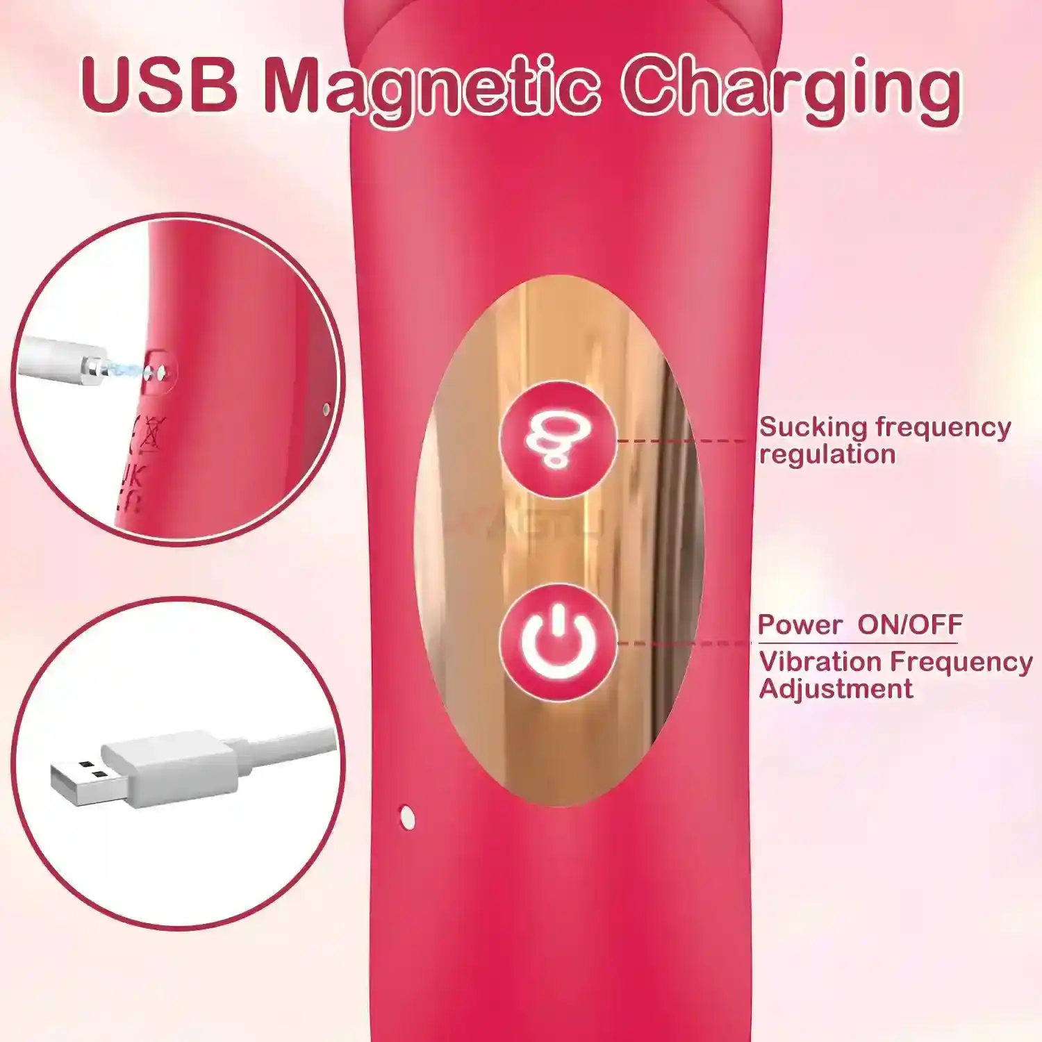 • Doble Estimulación: Experimenta la fusión perfecta de succión delicada y vibraciones estimulantes para un placer explosivo e inolvidable.